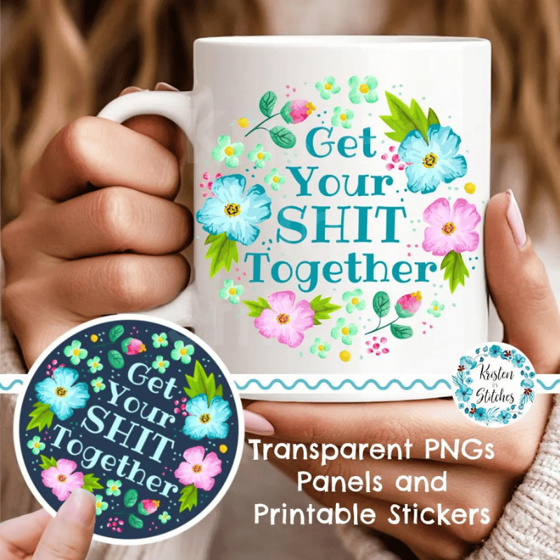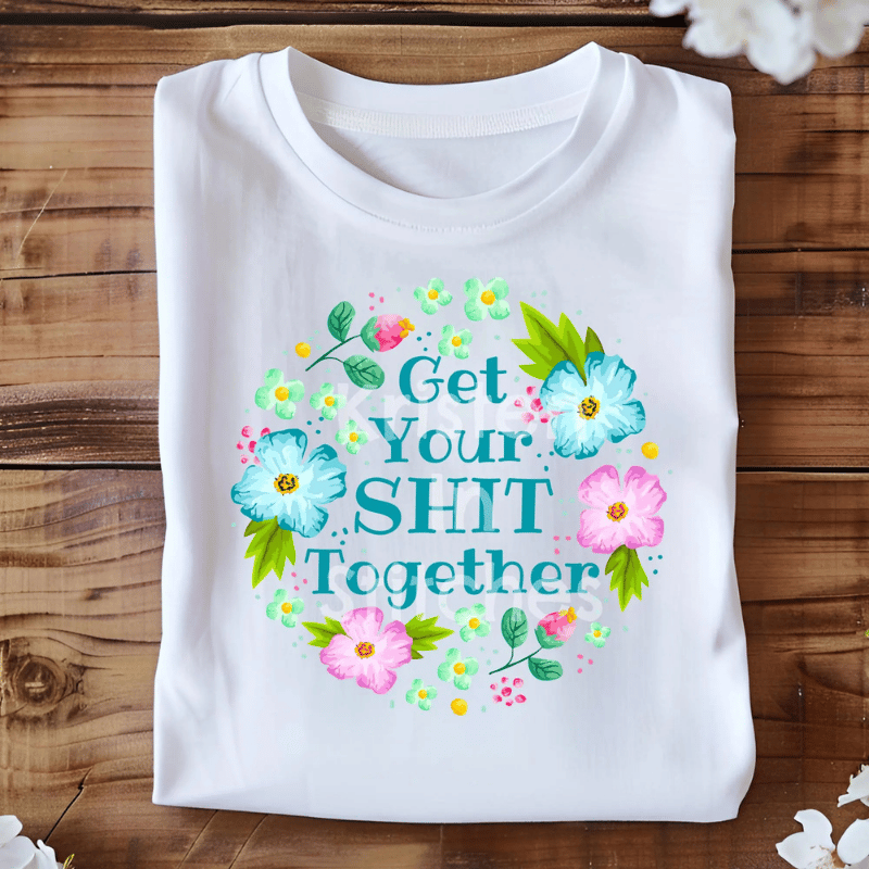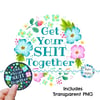 Get Your Shit Together! floral graphics. Use for stickers, badge reels, jar and candle labels, uv dtf transfers, shirts, digital journals and so much more!