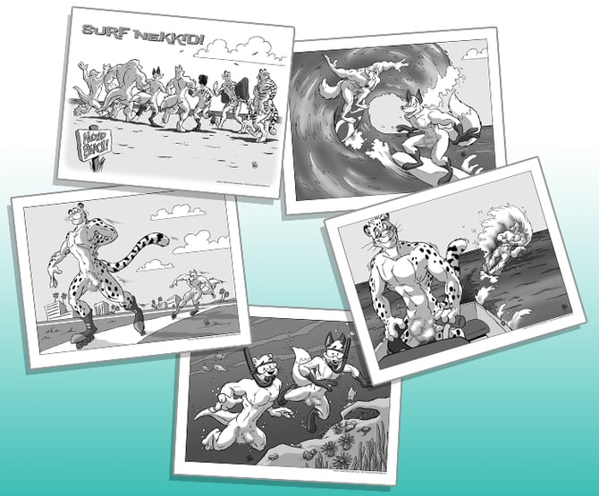 From the Archives: Cooner's Surf Nekkid! 2009 Portfolio! A gang of friends spend a busy day from dawn to dusk on the beach, participating in various activites together, but all nekkid of course! Adult but playful, provocative yet casual. Originally published in 2009, this is the first digital release and has been lightly edited and remastered from the original.