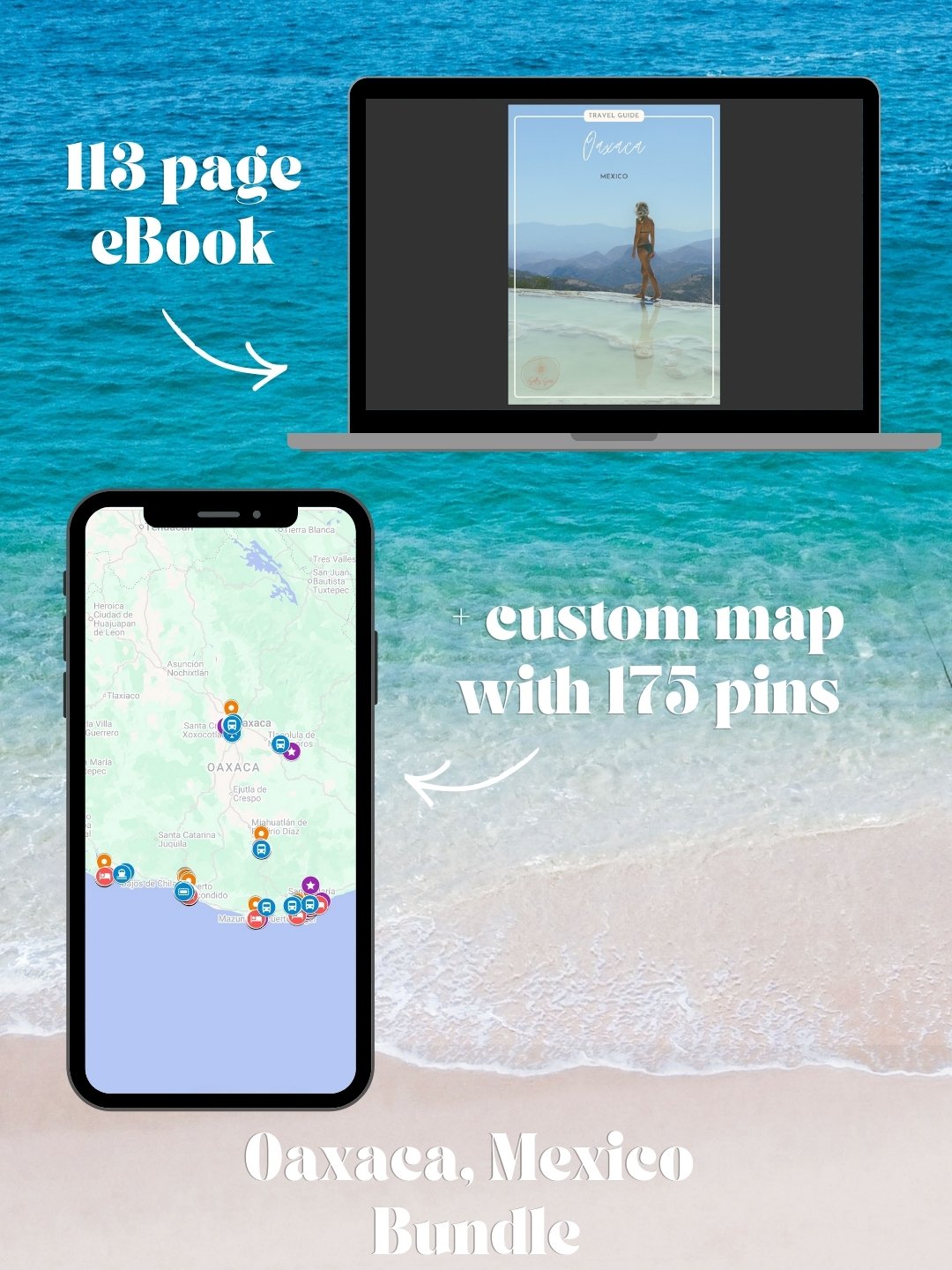 Plan the perfect adventure to Oaxaca with our bundle, including our 113-page travel guide eBook plus our custom map with over 175 pins.