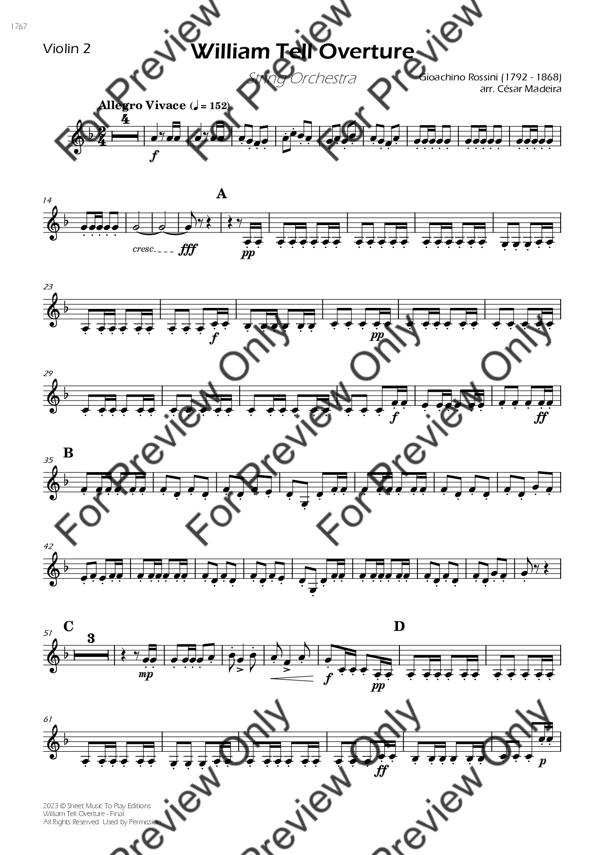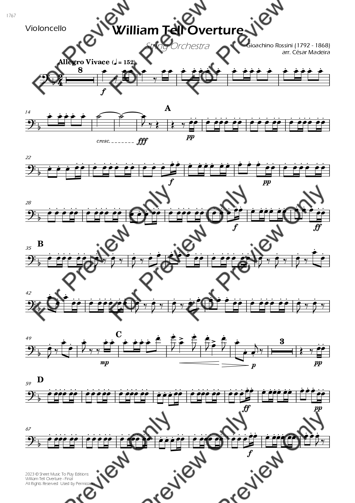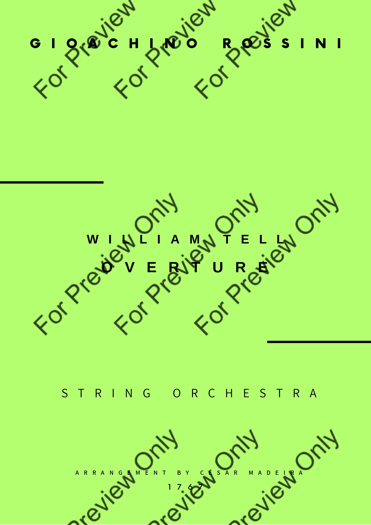 William Tell Overture by Gioachino Rossini. Arrangement for String Orchestra - Violin 1, 2, Viola, Violoncello and Contrabass. With Full Score and Individual Parts. Have fun!