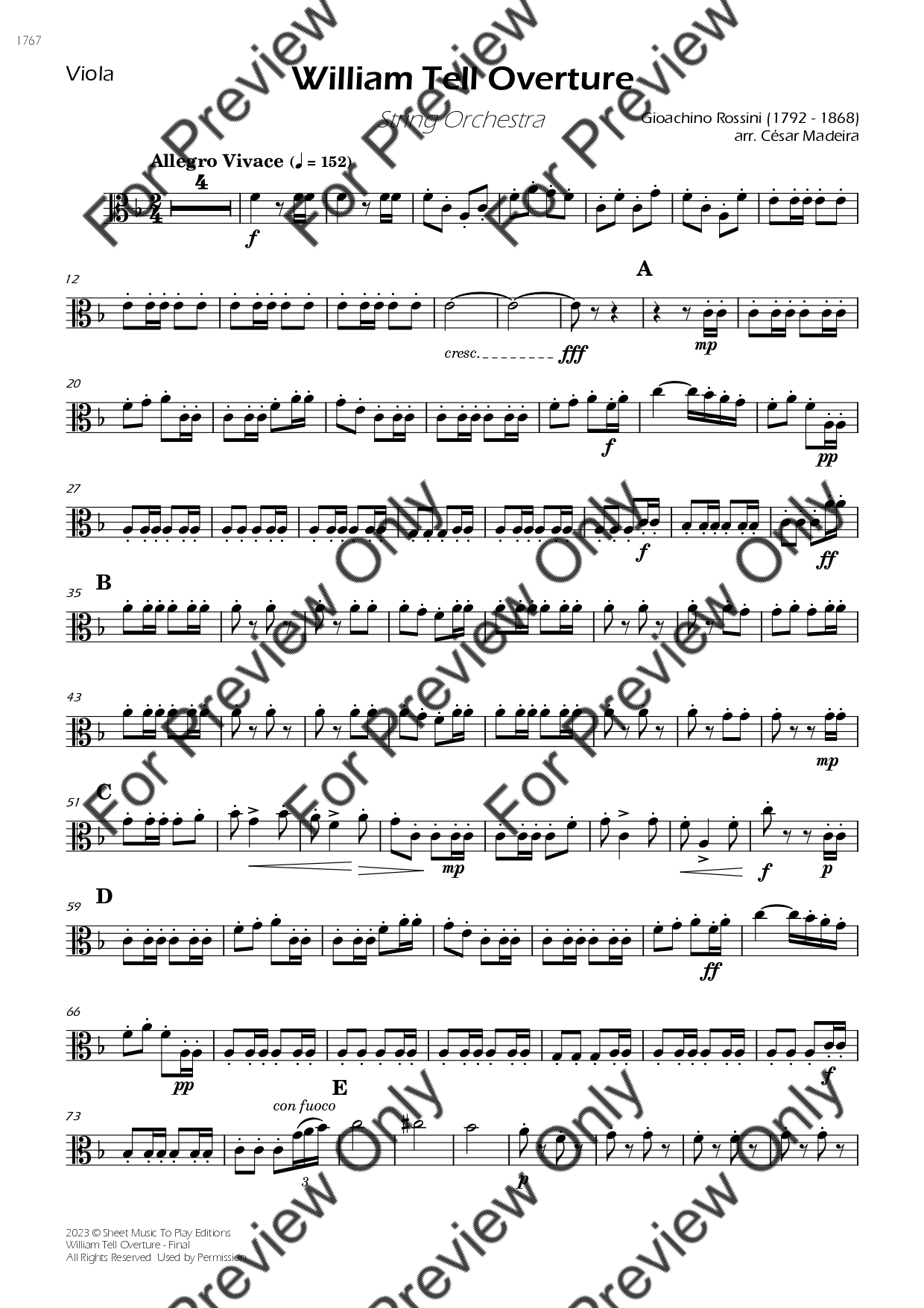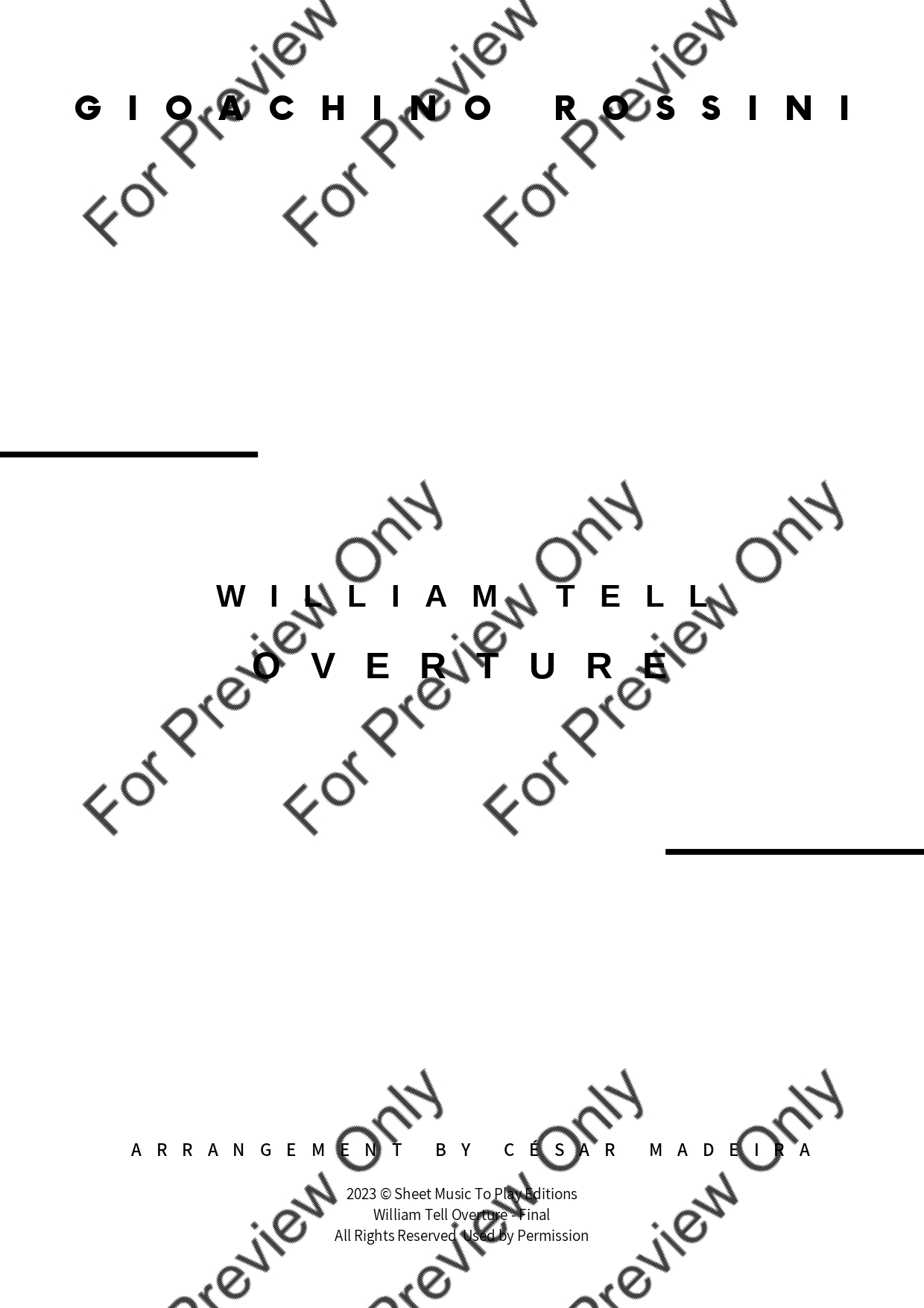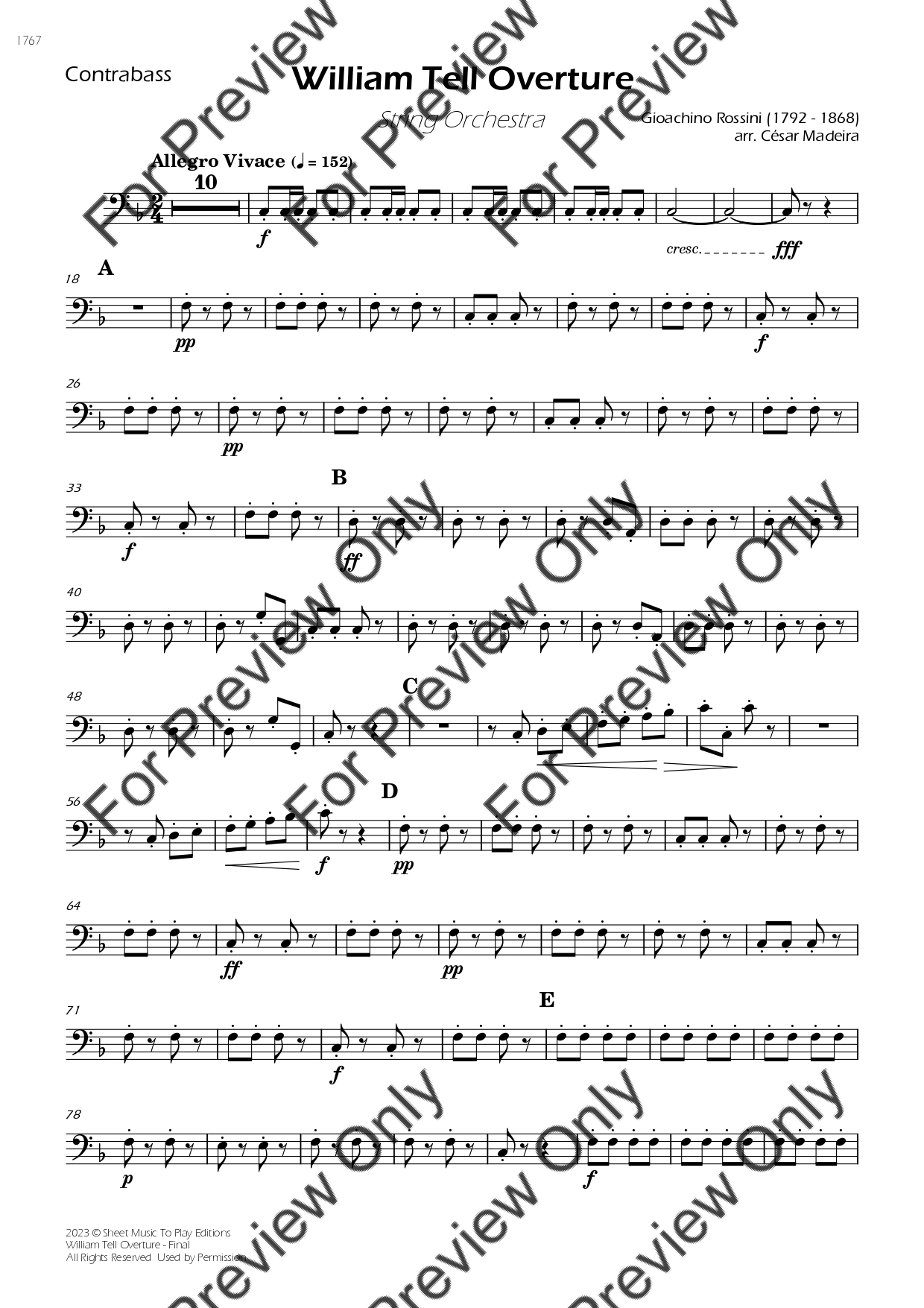 William Tell Overture by Gioachino Rossini. Arrangement for String Orchestra - Violin 1, 2, Viola, Violoncello and Contrabass. With Full Score and Individual Parts. Have fun!