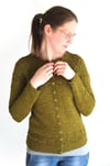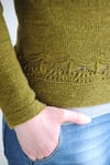 Rockweed features an ornate lace pattern on the round yoke and hem. Sharp double decreases made on both sides of the work create a scalloped neckline and undulating waves accented by garter ridges.Rockweed is a buttoned, fingering-weight cardigan worked seamlessly from the top down. Short rows placed at the bottom of the yoke create a well-fitting, round neckline whereas waist shaping at princess seams give the cardigan a slim silhouette. Garter-stitch button bands are made as you go so there's very little finishing work at the end!