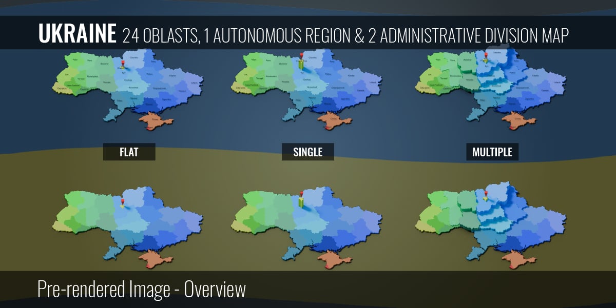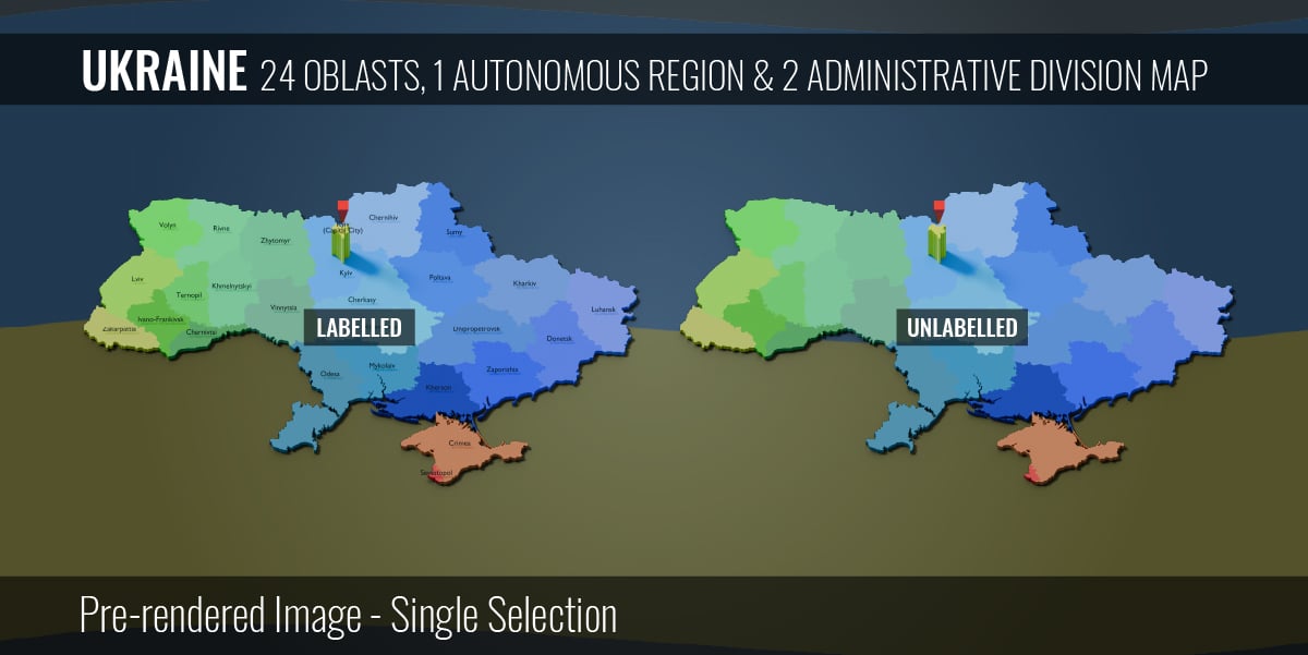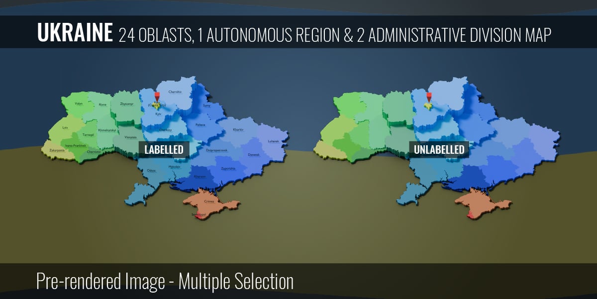 Ukraine - 24 Oblasts 1 Autonomous Region & 2 Administrative Division Map (3D + Pre-rendered Images)
