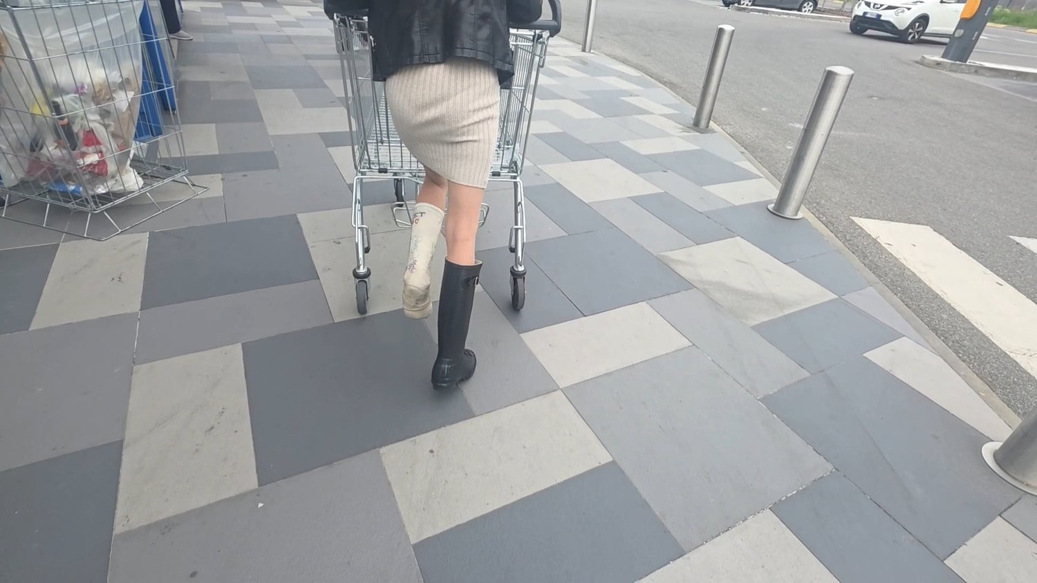 Hello everyone, today I'm posting the laboriously paced stroll I took yesterday through a supermarket. I browsed prices and purchased products. I'm wearing a light cotton sheath dress and black python-print Hunter boots. I'm walking, pushing the cart, and having fun at the same time. Enjoy the videos...