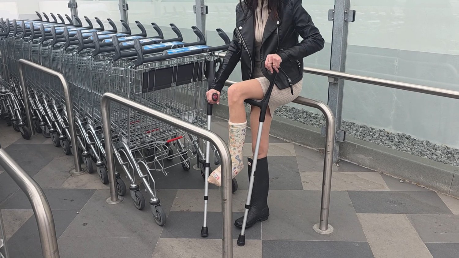 Ciao a tutti Oggi pubblico la passeggiata fatta a fatica ieri dentro un supermercato. Curiosato prezzi, e acquistato prodotti. Sono vestita con un tubino di cotone chiaro e uno stivale Hunter nero pitonato. Stampello, spingo il carrello e nello stesso tempo mi diverto i video continuano. Buona visione...
