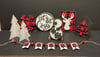 Let's get Cozy Tier Tray set is a 7pc. Set plus a snowflake Garland ! It comes with a Buffalo plaid snowflake, Buffalo plaid sign with a deer,let's get cozy pallet sign, a tag with a Buffalo,plaid tree,two 4 sided Christmas trees, a sweet snowman with snowflakes on his belly, and 5 snowflake banner Garland. This set is available painted or blank so you can finish in your own colors.