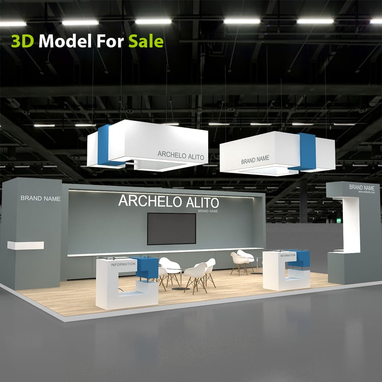 This professional 3D booth model is designed for exhibitions, trade shows, expos, fairs, and event displays.