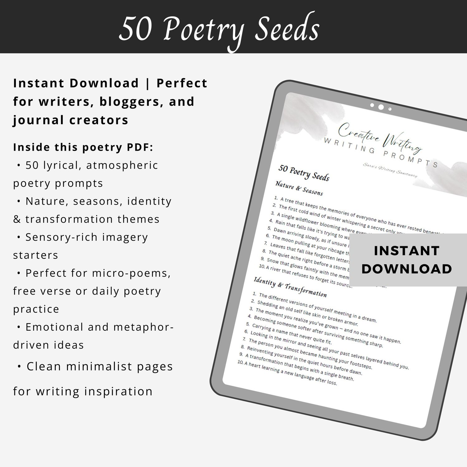 Perfect for poetry books, journaling, daily challenges, or social-media poetry projects.