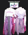 Sporty, comfy, and totally one-of-a-kind. This upcycled hoodie got a big step up by combining shades of purples and prints. The logo is still front and center but the rest was cropped and reimagined. Wear it as a dress, a tunic, or crawl up on the couch with your dog and snuggle.