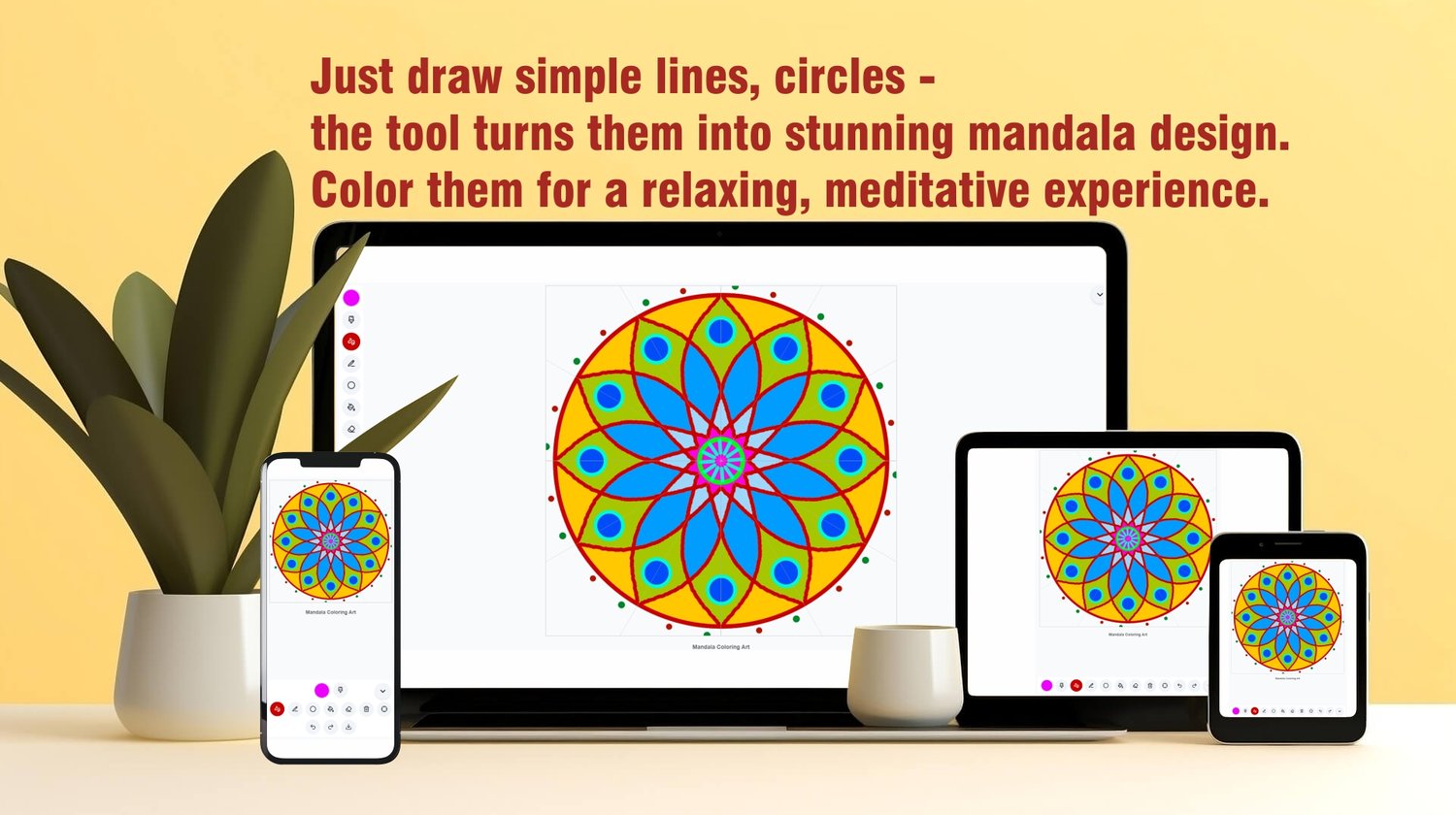 Mandala coloring app, mandala art download, digital mandala tool, relaxation coloring app, printable mandalas PDF, offline mandala drawing, creative mandala tool, coloring therapy, symmetry drawing app