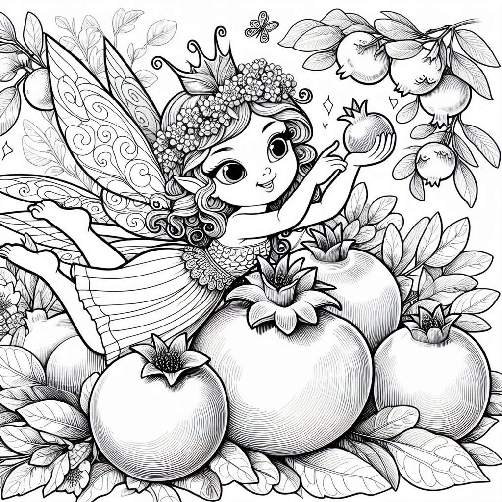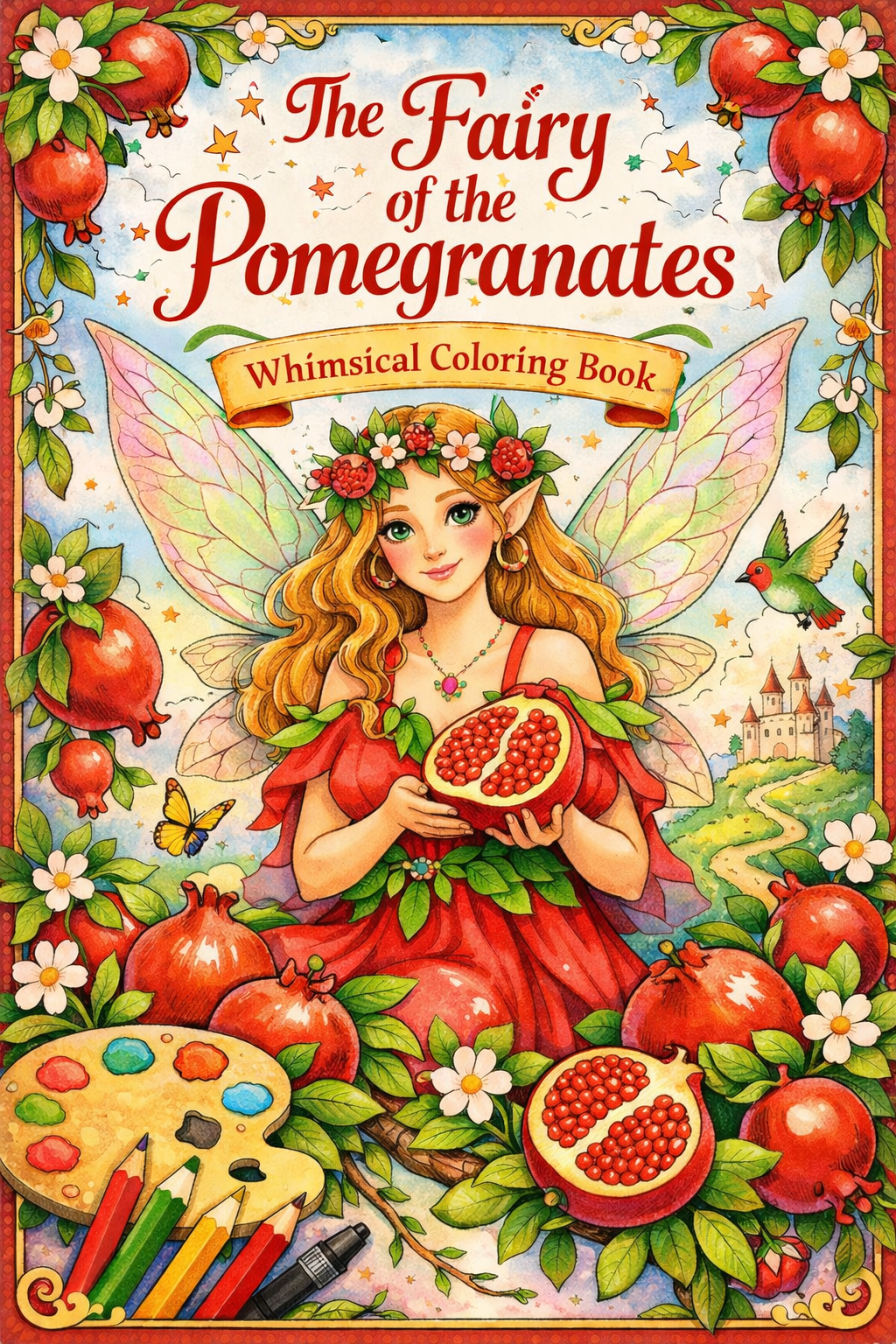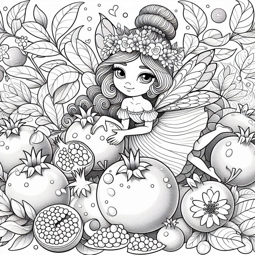 The Fairy of the pomegranates, coloring ebook, 50 pages, digital product, instantly download