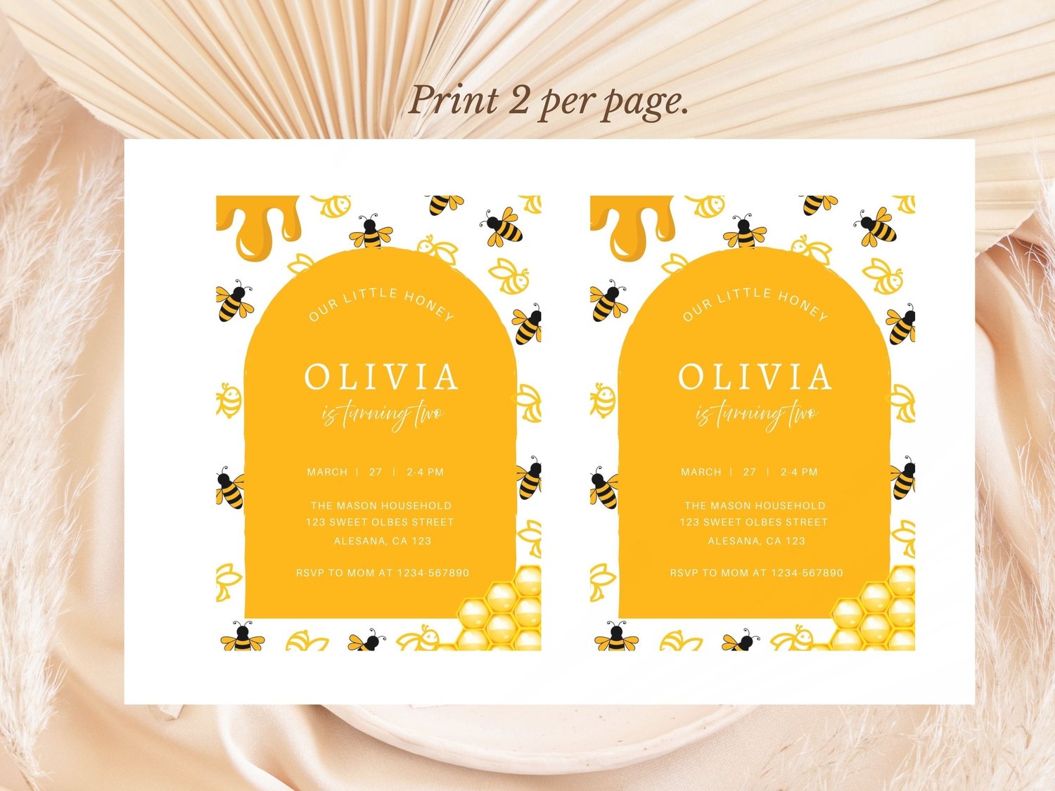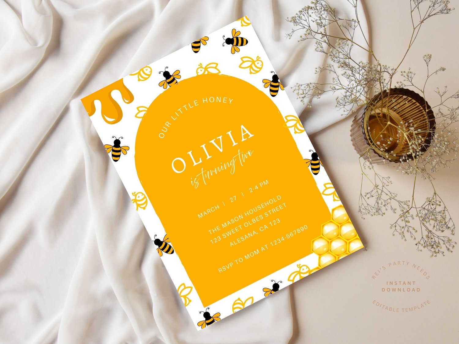 Modern Aesthetic Honey Bee Birthday Invitation Gender Neutral Insect Invite Happy Bee Day Children’s Birthday Party Sleek Invitation Digital Download