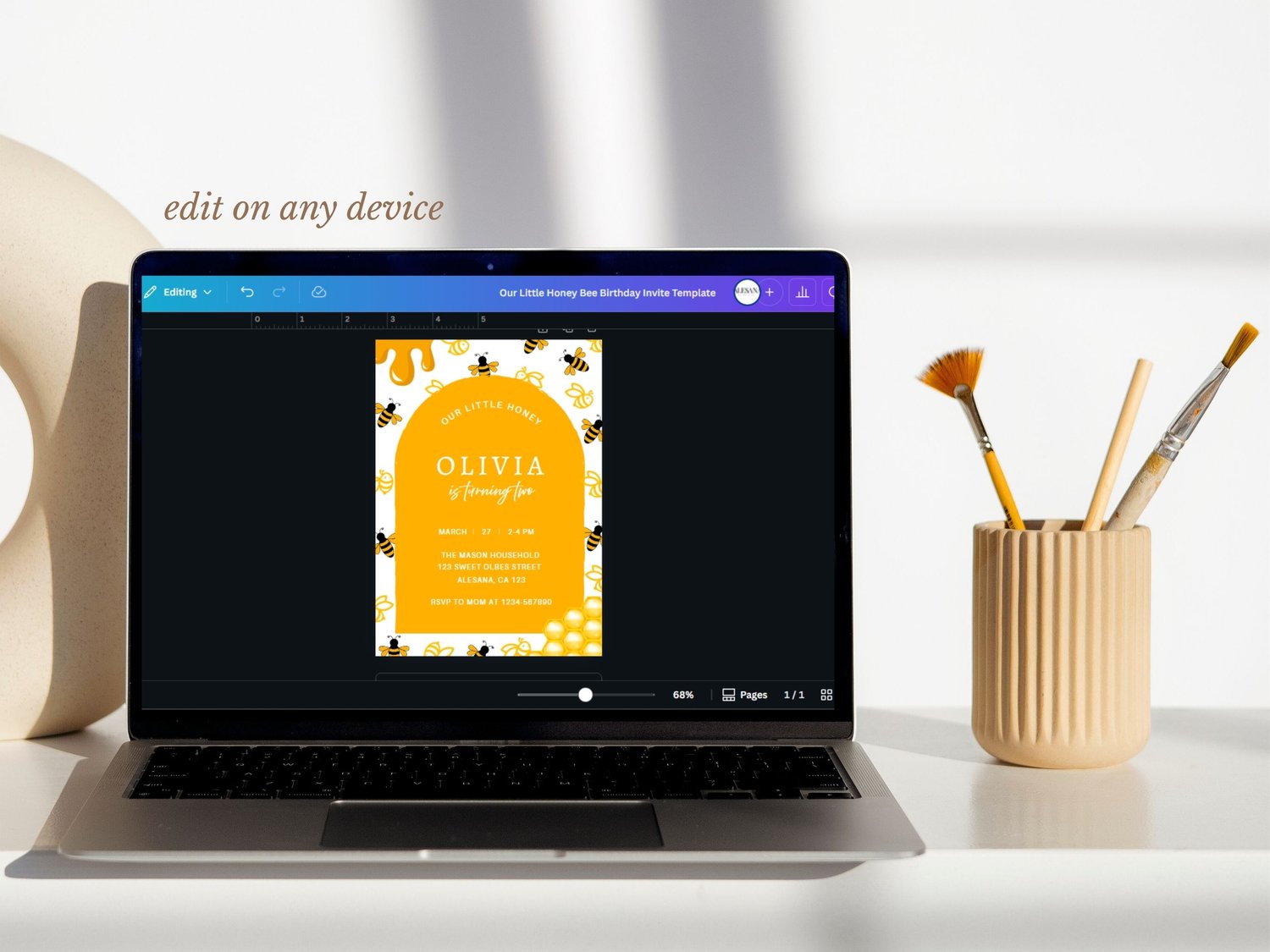 Upon purchase, you will receive a PDF file with the link that will direct you to its Canva Template. You can edit it yourself through your phone, laptop, tablet or PC.
