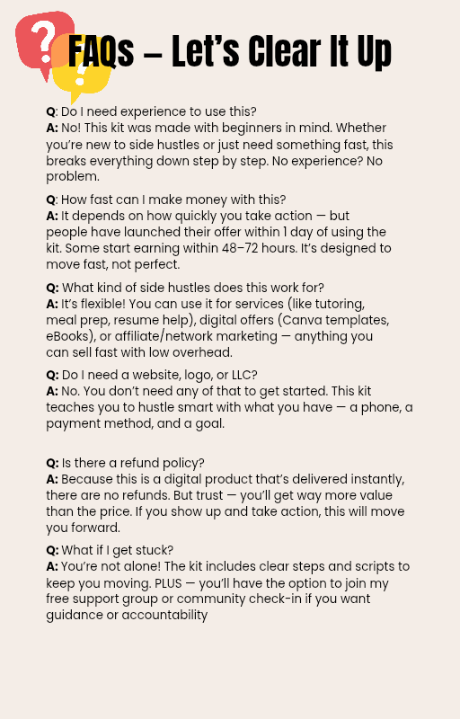 The Emergency Side Hustle Kit was created for people who need fast results and real income—no fluff, no tech headaches, and no gatekeeping.