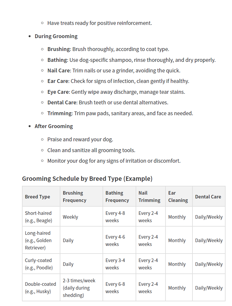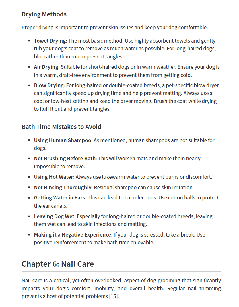 - Step-by-Step Guides for bathing, drying, clipping, and brushing.