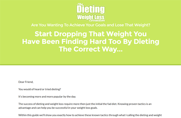 You can view the opt-in squeeze page here forĀ The Dieting Weight Loss Correction Opt-in Page.