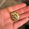 This beautiful necklace carries a secret note. The sunflower locket opens up to reveal the loving words: