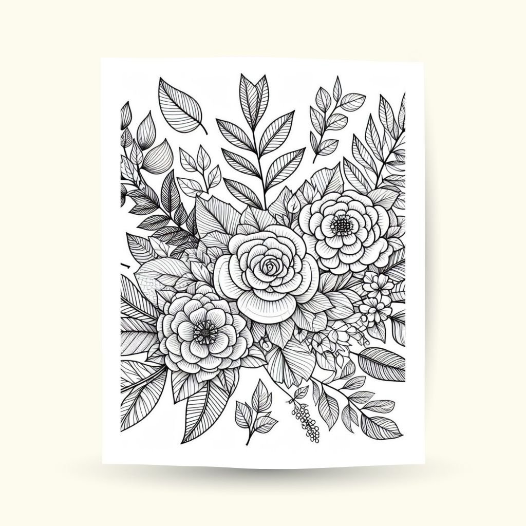 Blooms of Serenity: A Floral Coloring Journey Download Coloring Book Adult 39 Coloring Page PDF