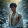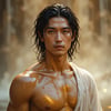 Misogi Echo is a mesmerizing AI-generated digital portrait of an ethereal male figure inspired by the Misogi purification ritual. With glowing pistachio green eyes, golden skin, and refined Latin facial features, this piece celebrates both cultural beauty and spiritual transcendence.