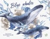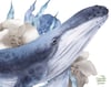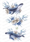 Blue whales. Under the sea. Nautical mood: compositions with blue flowers and seagrass