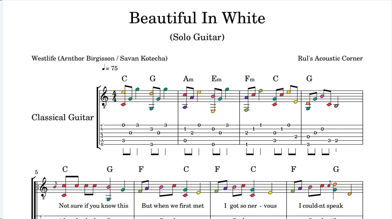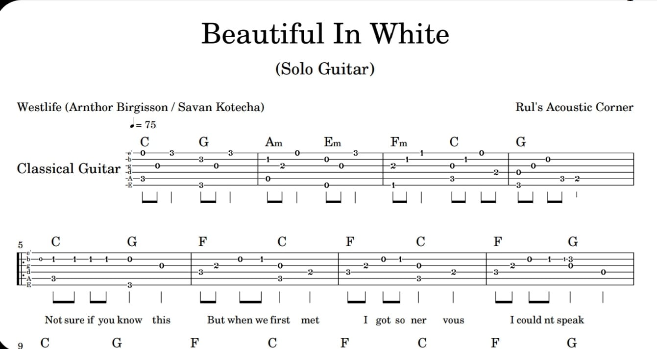 Westlife - Beautiful In White Solo Guitar PDF Audio Video