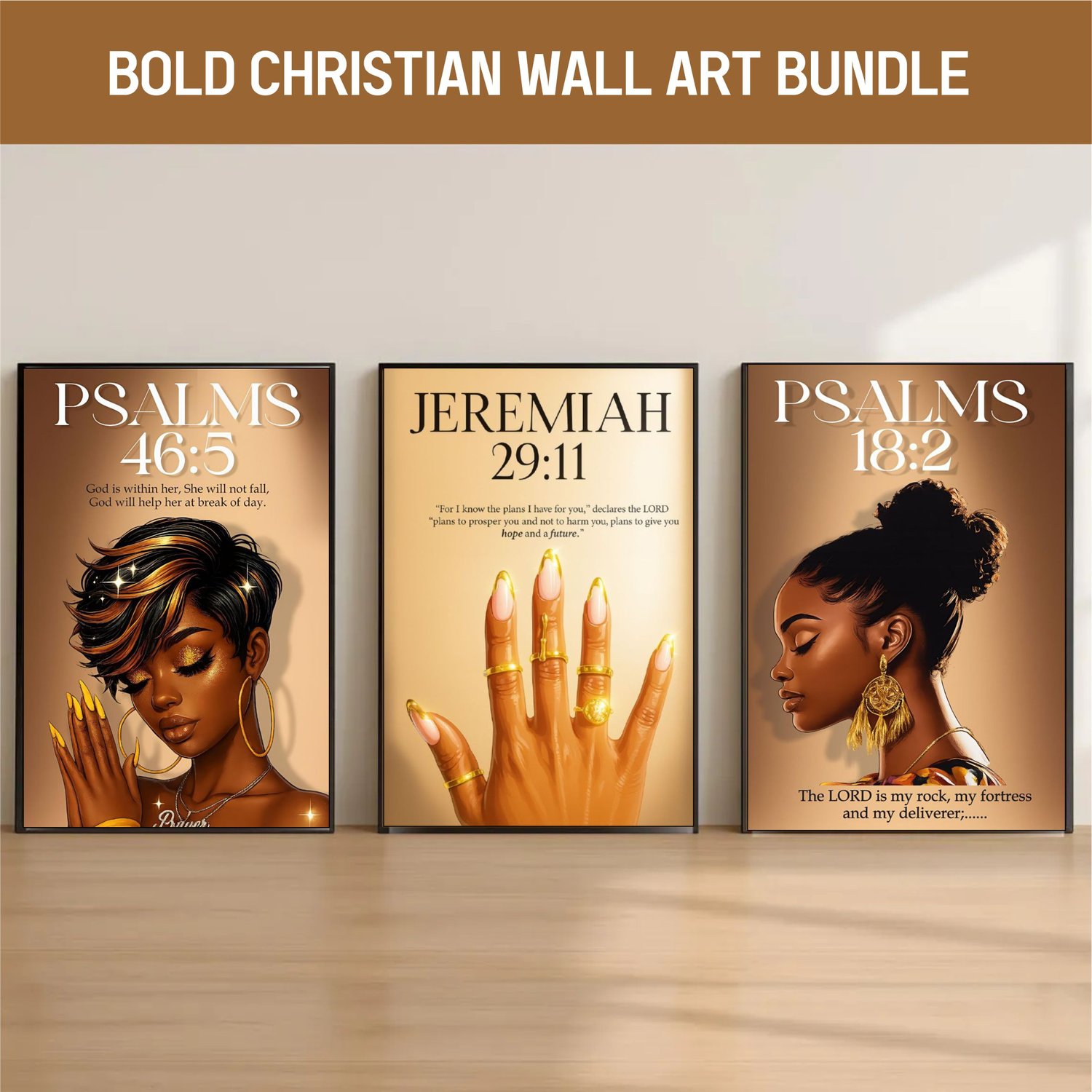 Divine Scripture Wall Art Collection – Psalms 46:5, Jeremiah 29:11, Psalms 18:2