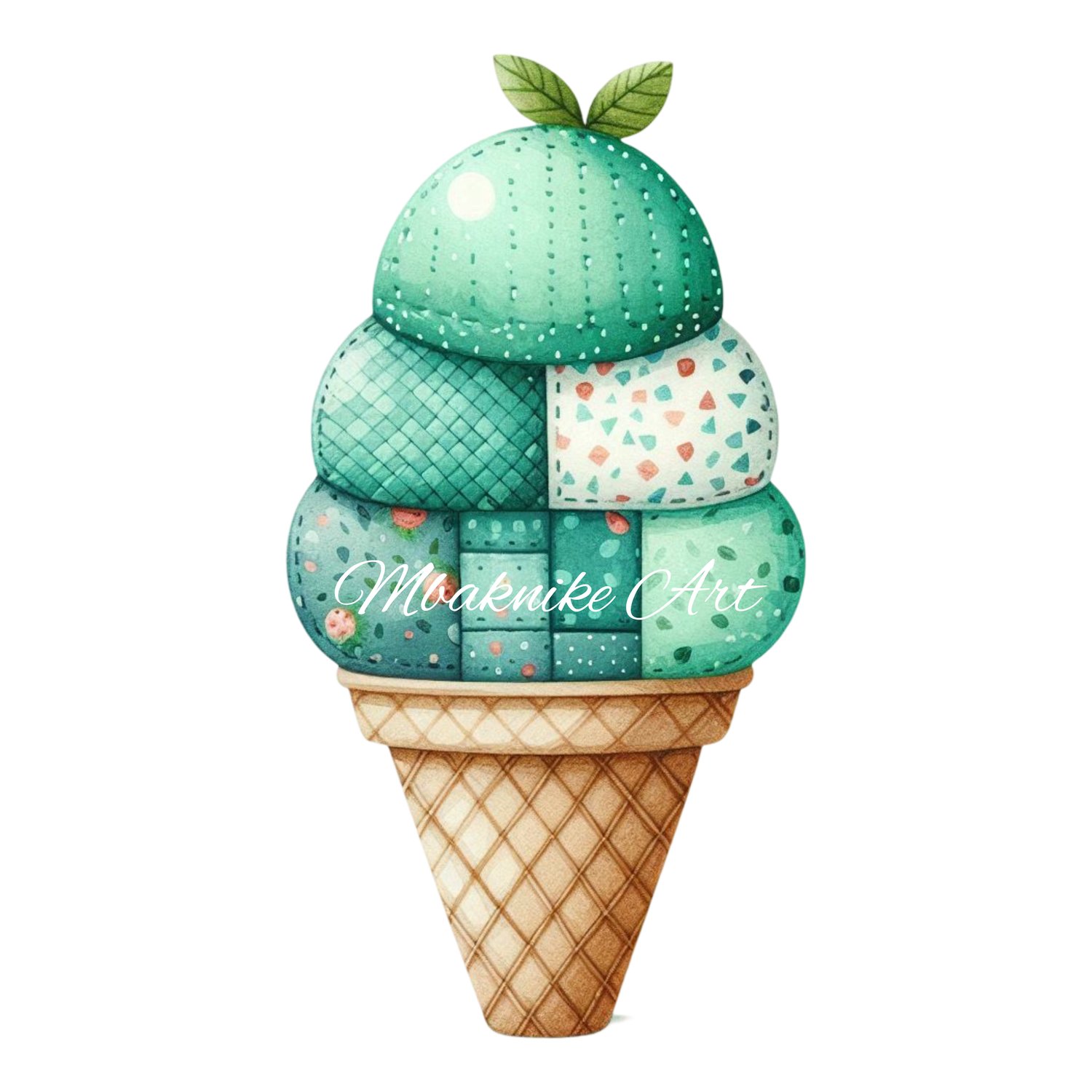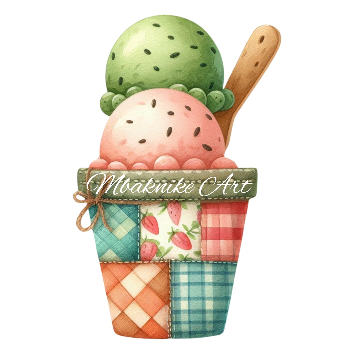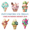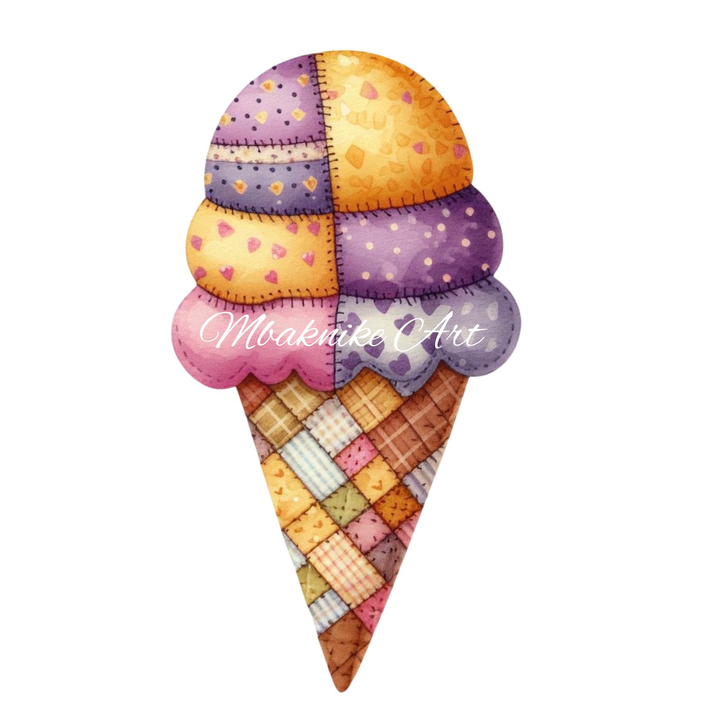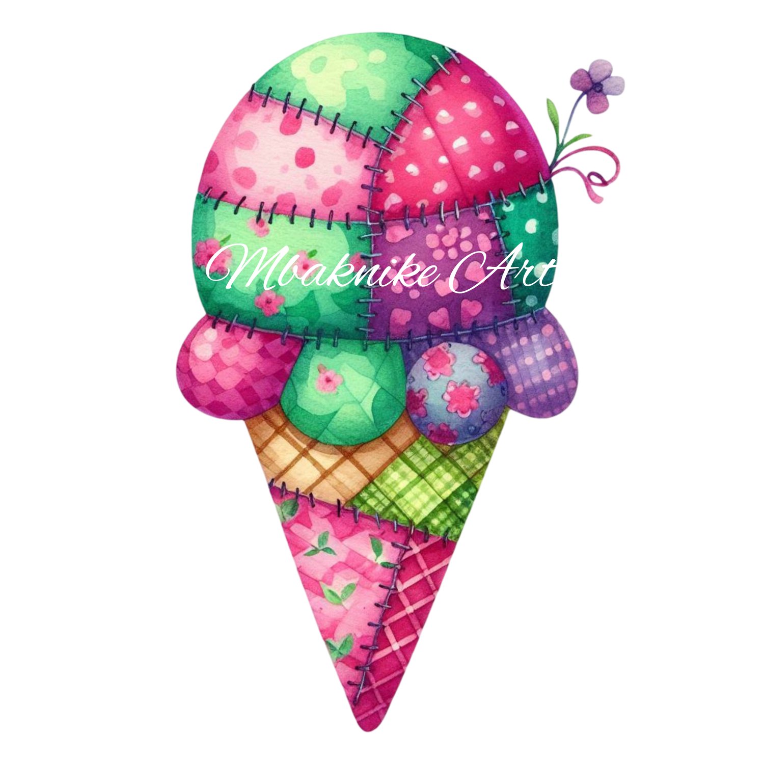 Elevate your creative projects with our enchanting "Patchwork Ice Cream Clipart" collection! This digital set includes 12 meticulously designed images, each in PNG transparent format, boasting a high resolution of 300 dpi and a size of 4096 x 4096 px.