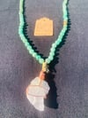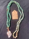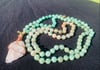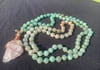 This is a rare mala in our collection- the only one with green aventurine. Green aventurine provides strength, confidence, courage and happiness. It renews one's optimism for life and inspires us to take action to acquire what we want. It lights us up and gives us a feeling of yes, yes I can. Yes I can have peace of mind in this moment now, yes I can live in alignment with my values and have all my needs met financially yes I can improve my health and radiance! Yes I can play have fun and allow joy into my life now!