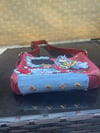 - Base: Authentic vintage Coach leather in rich crimson red.
