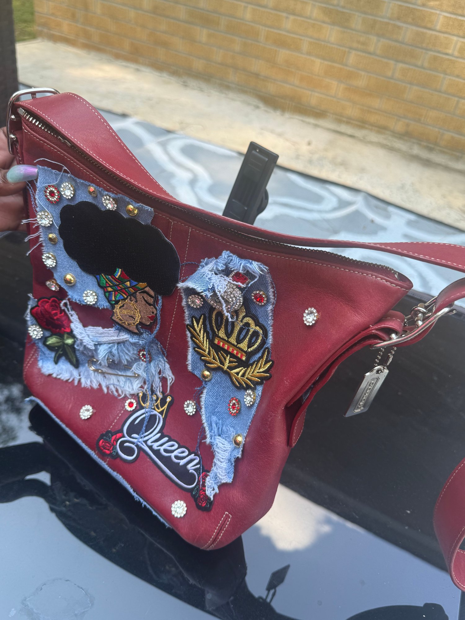 Step aside, ordinary. This vintage Coach shoulder bag has been transformed into a one-of-a-kind statement piece—an unapologetic celebration of Black excellence, power, and street couture.