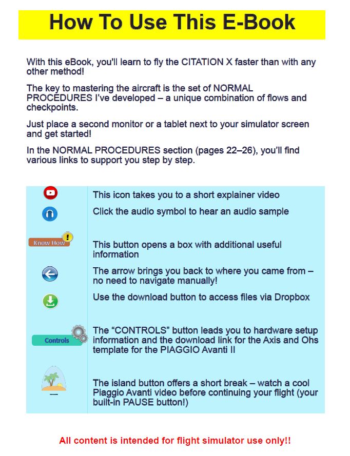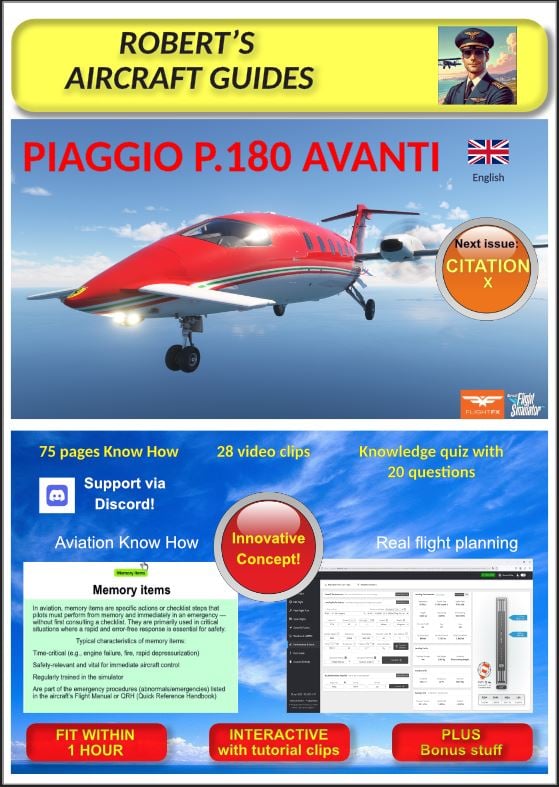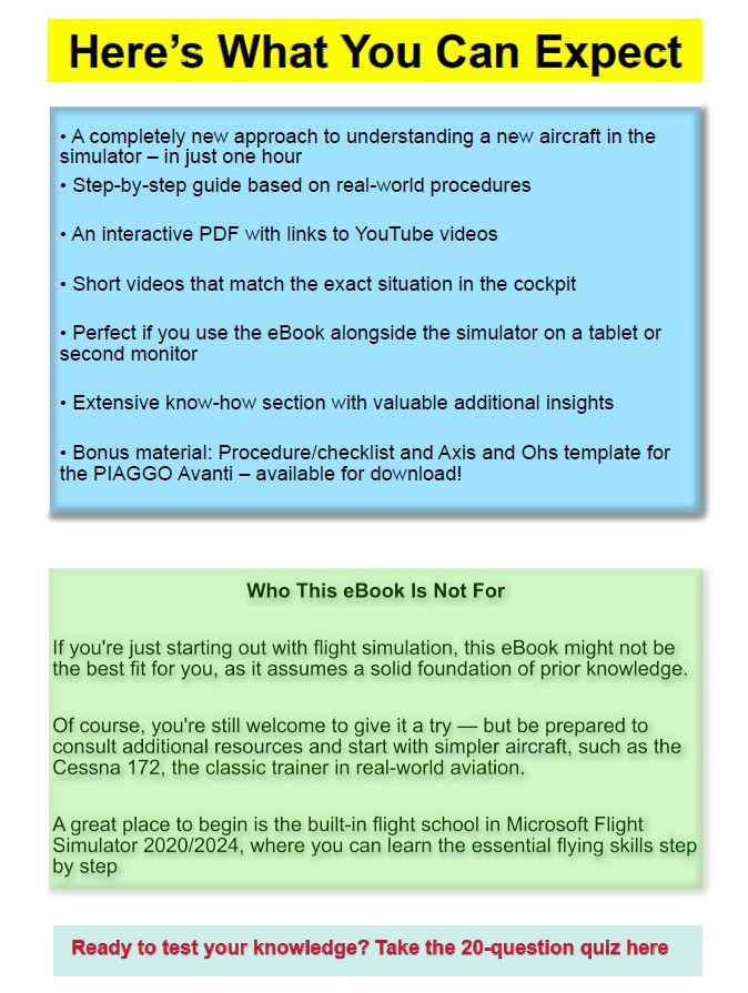 With this eBook, you'll learn to fly the PIAGGIO P.180 Avanti II in Microsoft Flight Simulator faster than with any other method!
