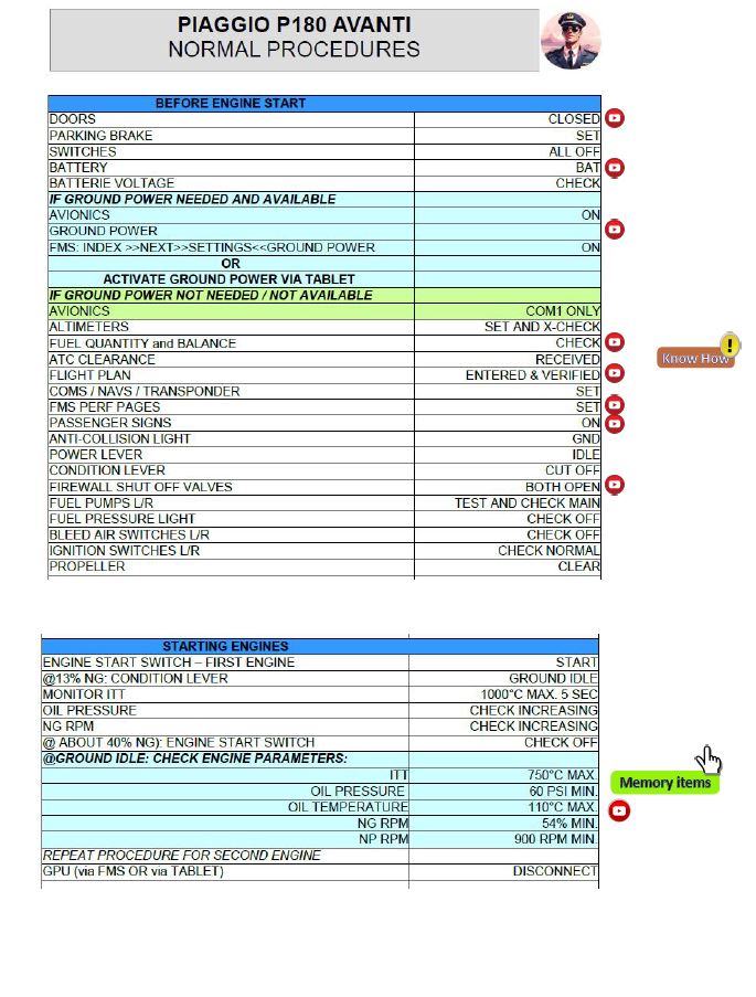 The central anchor for operating the aircraft is the set of NORMAL PROCEDURES I’ve developed – a combination of flows and checkpoints.