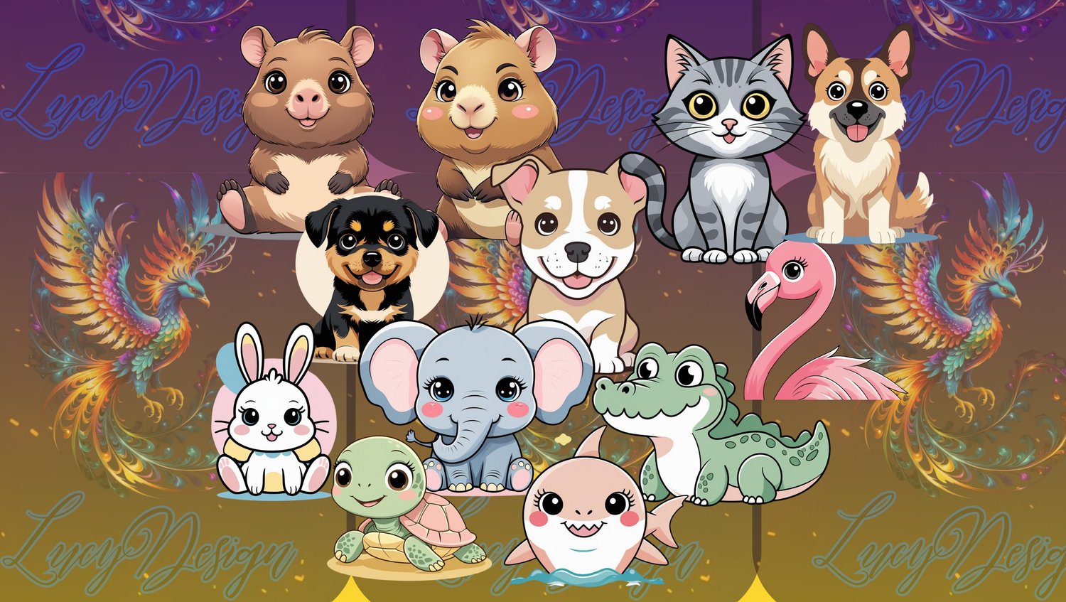 Ebben a csomagban 33 egyedi állatos clipart található, átlátszó hátteres, nagy felbontású PNG formátumban – tökéletes matricákhoz, tervezőkhöz, nyomtatható anyagokhoz és egyéb kreatív projektekhez!