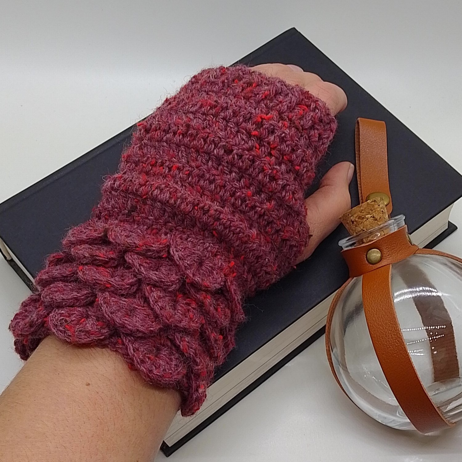 Use this pattern to practise the dragon scale stitch (also known as crocodile stitch). Starting with five rows of scales, although you could add more, a section of trebles is worked for the hand, then finished with a crochet rib. Worked flat using DK yarn, you could also use this as a scrap buster, working each row of scales in a different colour.