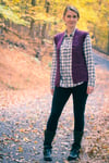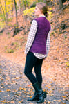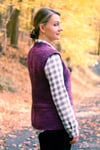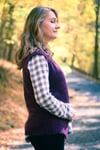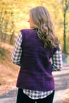 Perfect as a light layering piece, Patty Ann is a casual, open front vest knit in Seed stitch with rib edgings. Worked from the bottom up with gentle shaping at the hip and bust and a few short rows to shape the shoulders, only minimal finishing of the back neckband and armhole edging is required. The lean, simple shape is easy to wear and attractive for any body, and the textural stitches bring just enough interest and show off a beautiful hand dyed yarn.