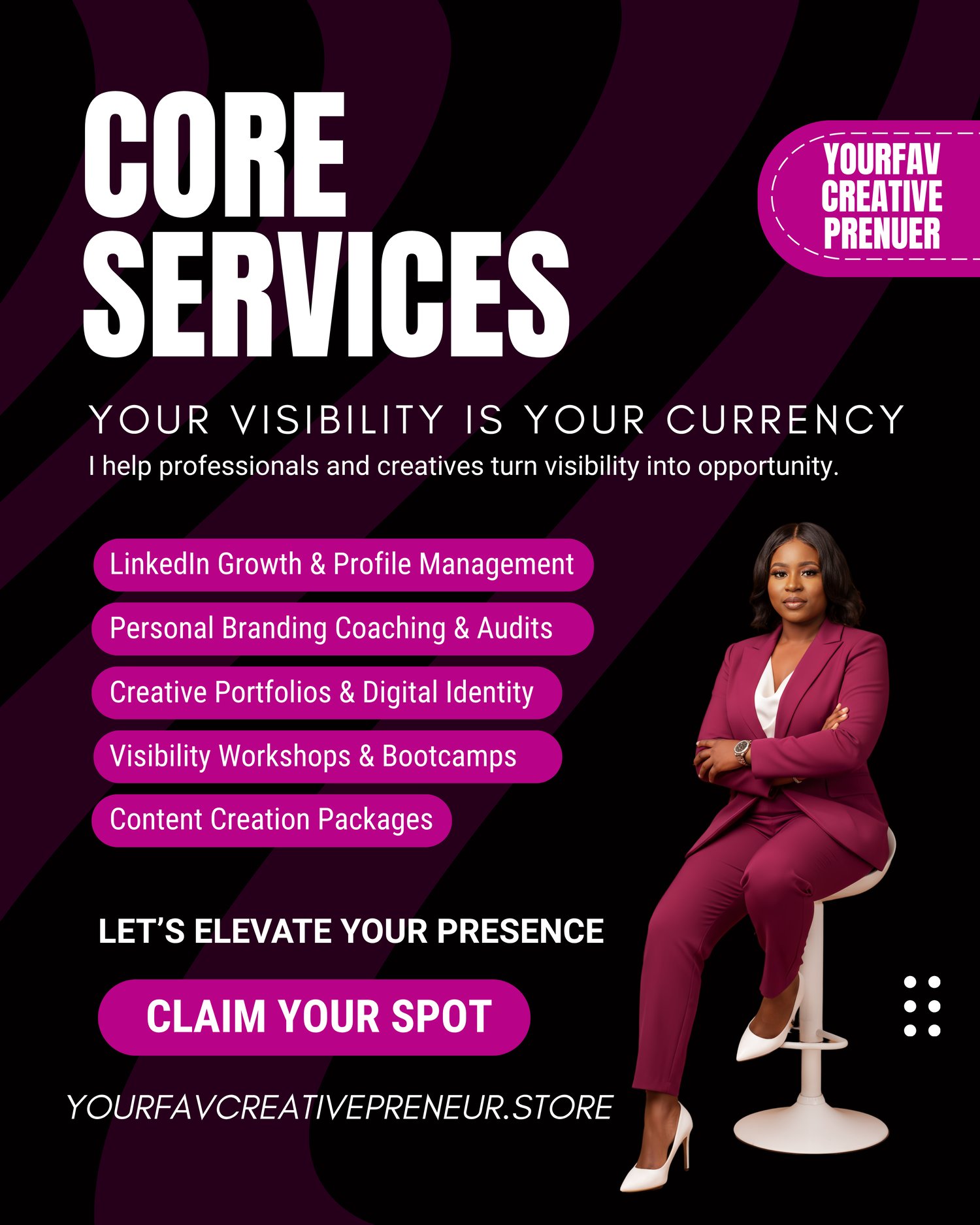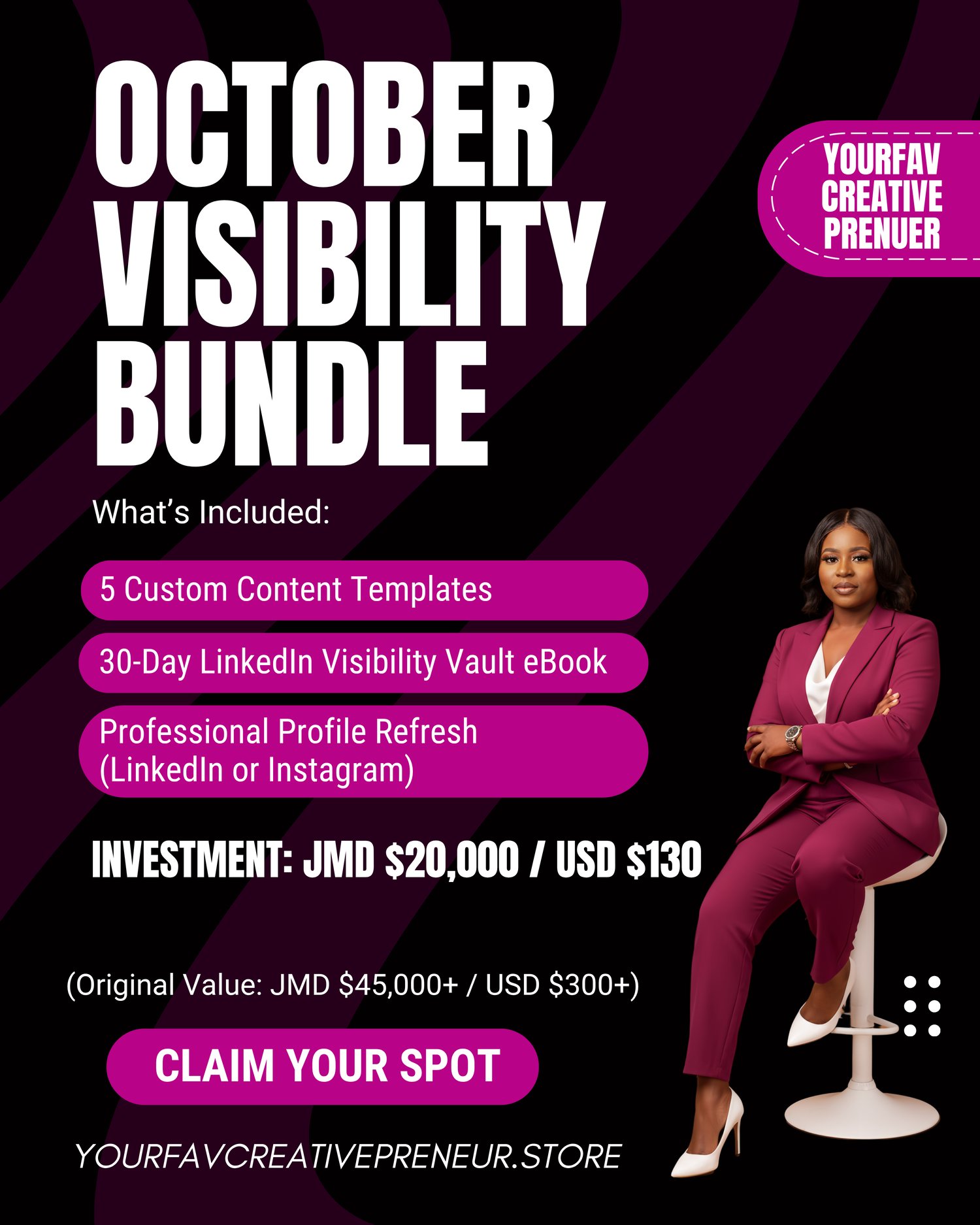 This limited-time bundle is designed to help professionals and creatives show up with confidence and consistency. You’ll walk away with done-for-you content templates, a 30-day action plan to grow your visibility, and a refreshed professional profile (LinkedIn or Instagram) that positions you for new opportunities.