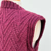 Looking upwards from ground level in urban areas can bring a new perspective to architectural features. This vest was inspired by a protruding building corner which was designed to create shade for the street below. The lower section of the vest has a twisted stitch pillar pattern. The pillars then divide to form the canopy pattern on the upper body.