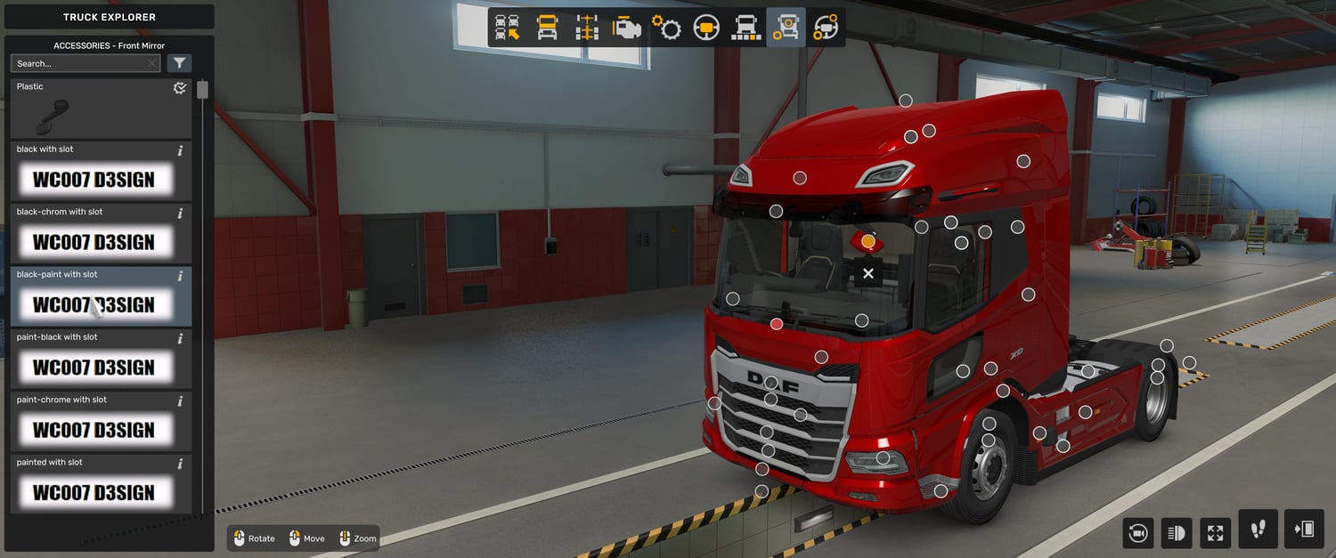 MOD description: Daf XD front mirrors with slots, there are lot of colour variants