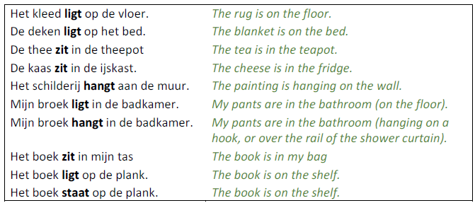 - Een grammaticale uitleg in het Engels over het gebruik van positionele werkwoorden in het Nederlands.