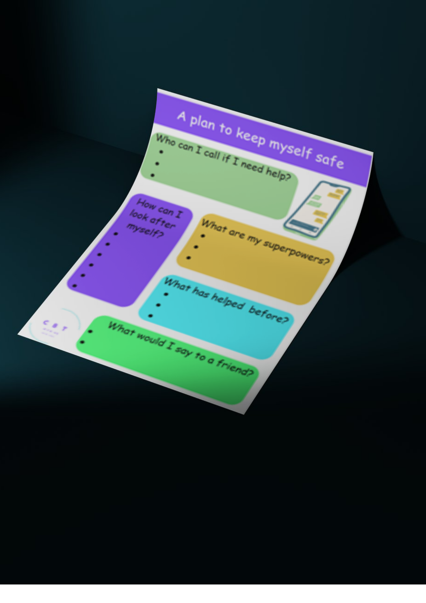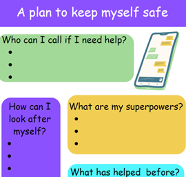"A plan designed to help support the user identify any risky behaviours, thoughts or feelings they have and allowing space for a contingency plan for them of things to do if they don't feel safe."