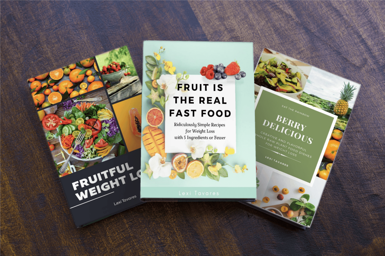 Get Fruit is the Real Fast Food Recipe eBook, Focus On the Fruit: An A-Z Guide comprehensive eBook resource, Think Yourself Healthy mindset eBook, Berry Delicious Recipe eBook, and both the Fruitful Weight Loss eBook and audiobook at a massive discount!