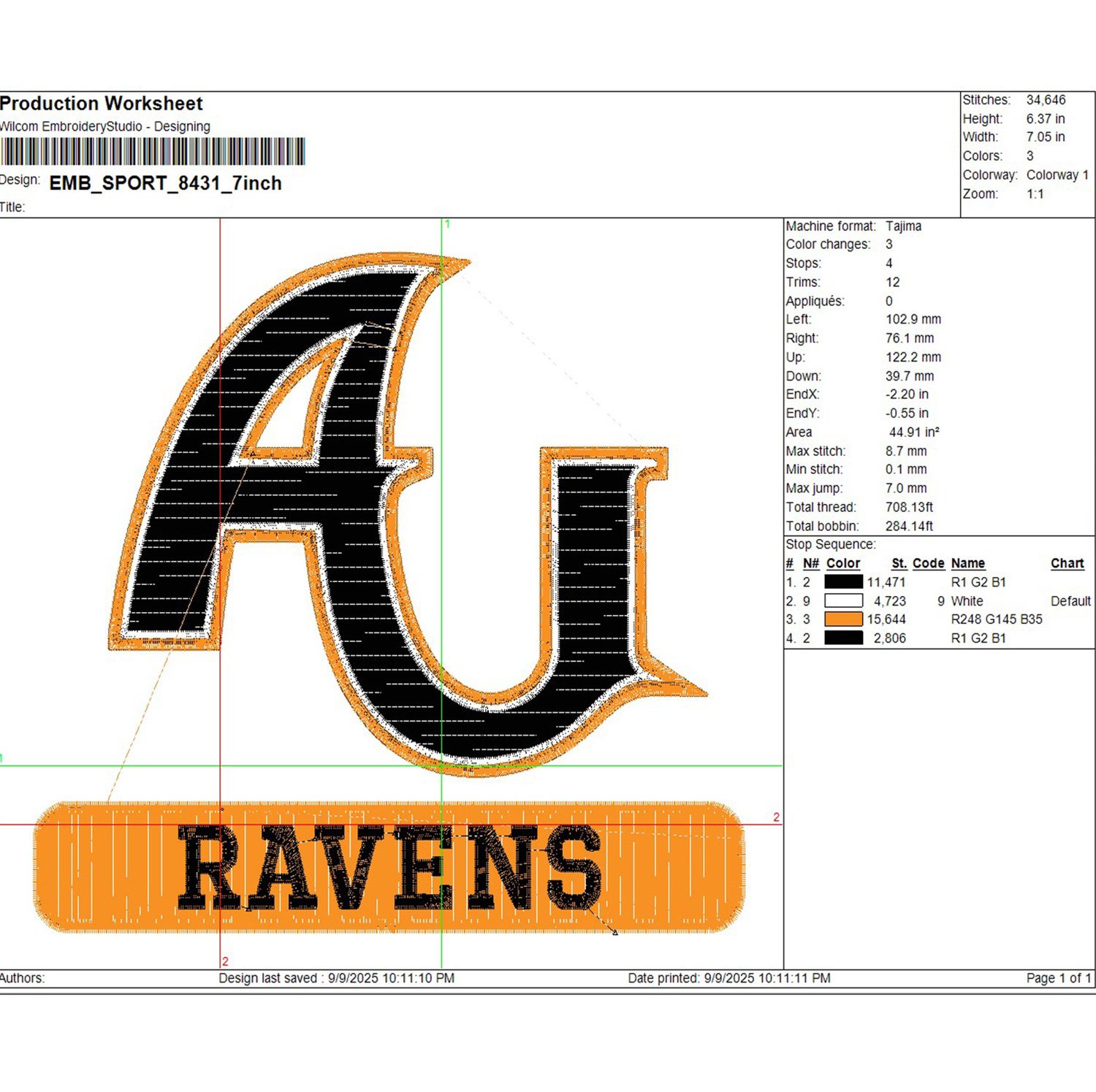 AU Ravens NCAA Football Team Word Logo Embroidery Designs, Ncaa Embroidery Files, NCAA Anderson Ravens Football Team Logo Embroidery, Game Day Machine Embroidery Design, Digital Download