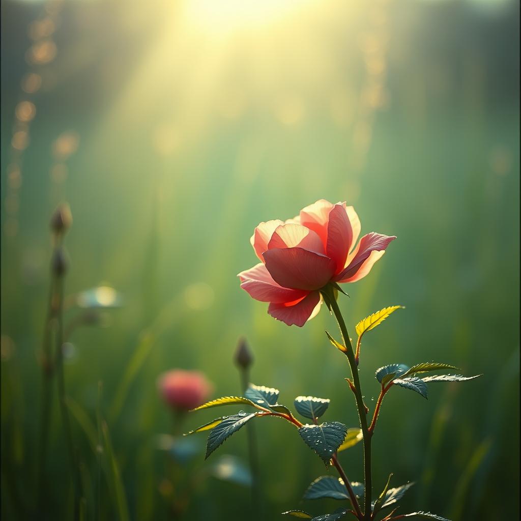 Raindrops are not harsh or punishing; they are gentle and nurturing. The rose “opens its eyes,” suggesting awakening, trust, and willingness to receive what comes from above. Rain becomes grace rather than adversity.