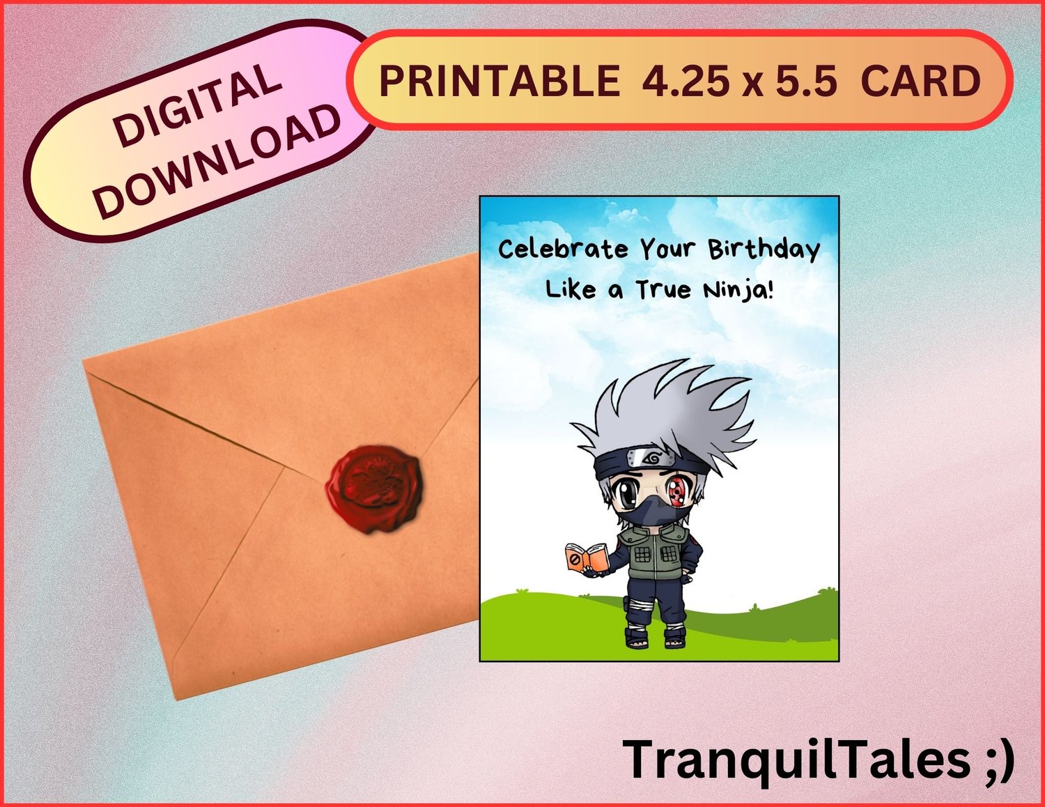 HATAKE KAKASHI - NARUTO SHIPPUDEN - BIRTHDAY CARD - 4.25" x 5.5" - PDF FILE