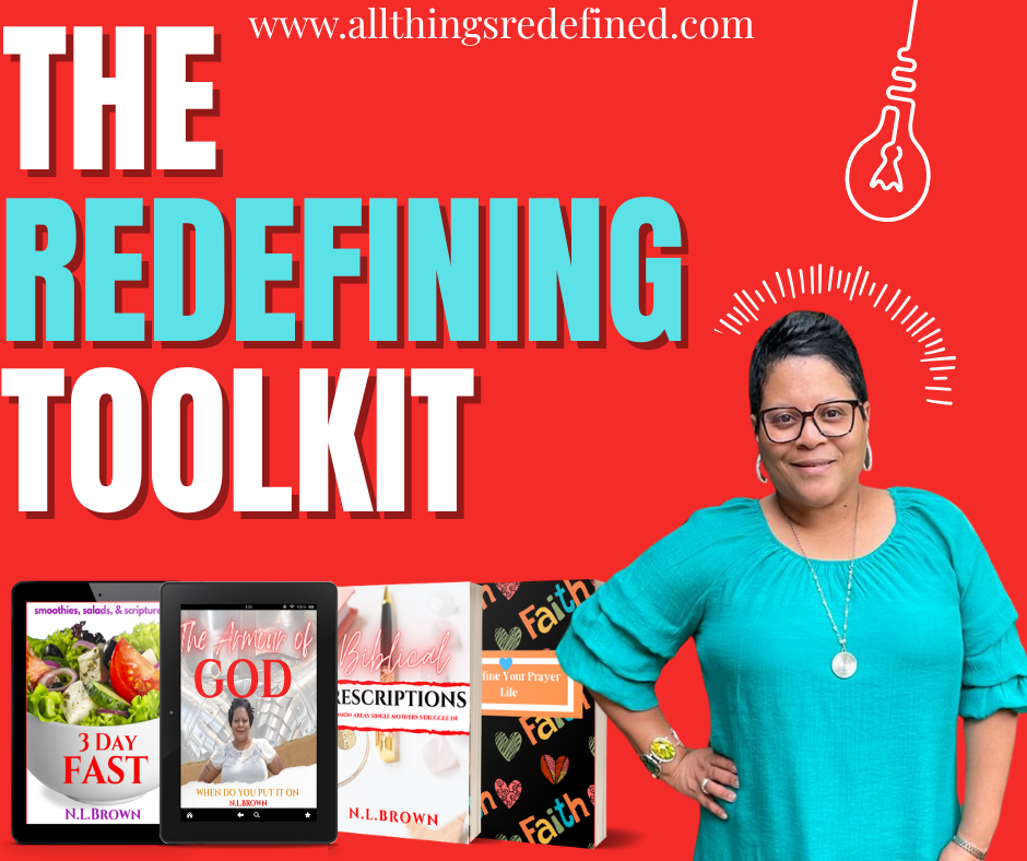 Welcome to the Redefining Toolkit – your spiritual reset and strategy zone. These powerful resources were created to help you take intentional steps toward your healing, wholeness, and identity in Christ. Whether you need to plan, pray, fast, or war in the spirit—this toolkit gives you what you need to rise, rebuild, and redefine. This is for the woman ready to do the work