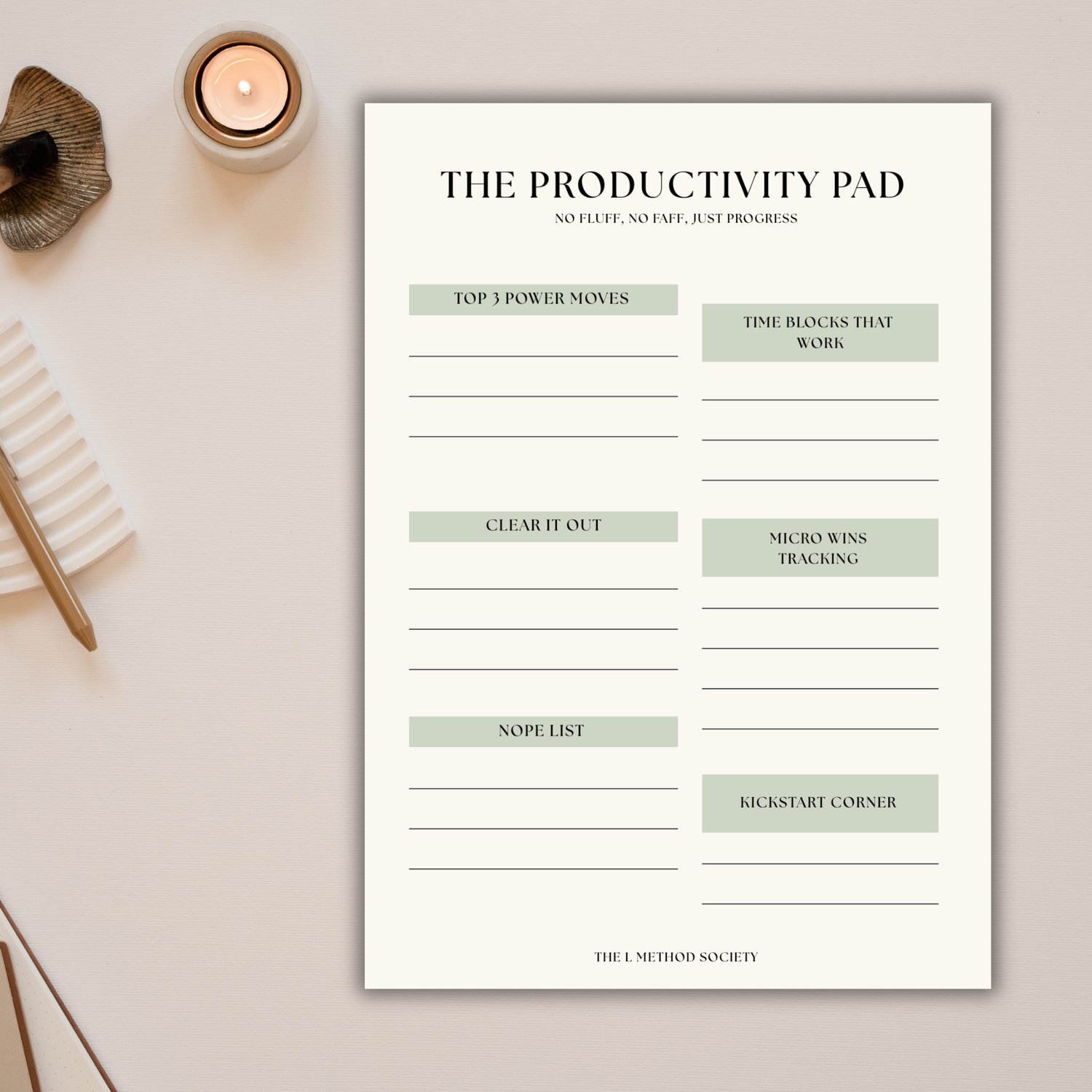 The Productivity Pad – Editable Daily Task Planner & Focus Template (PDF)