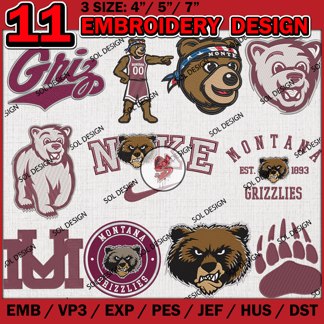 11 Montana Grizzlies Bundle Embroidery Files, College Football Embroidery Designs, NCAA Montana Grizzlies Machine embroidery Design Bundle, Ncaa Montana Logo bundle, Digital Download