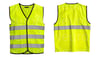 high-quality AI-generated image presents a bright yellow-green high-visibility safety vest with reflective stripes, shown in both front and back views. Isolated on a transparent background, this graphic is perfect for illustrating concepts of safety, construction, traffic control, and occupational health.