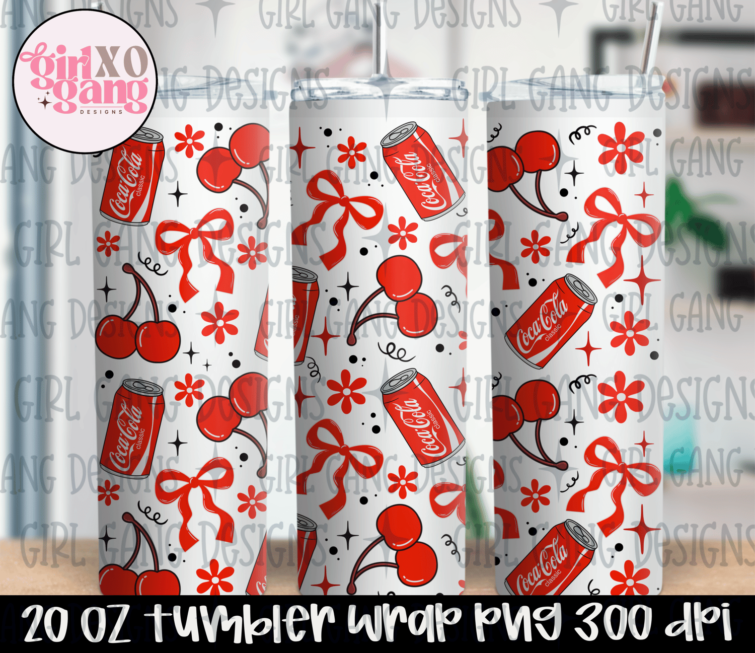 Cola red cherries coquette 20 oz tumbler wrap png, cute brew coffee coquette checkered tumbler wrap png, trendy