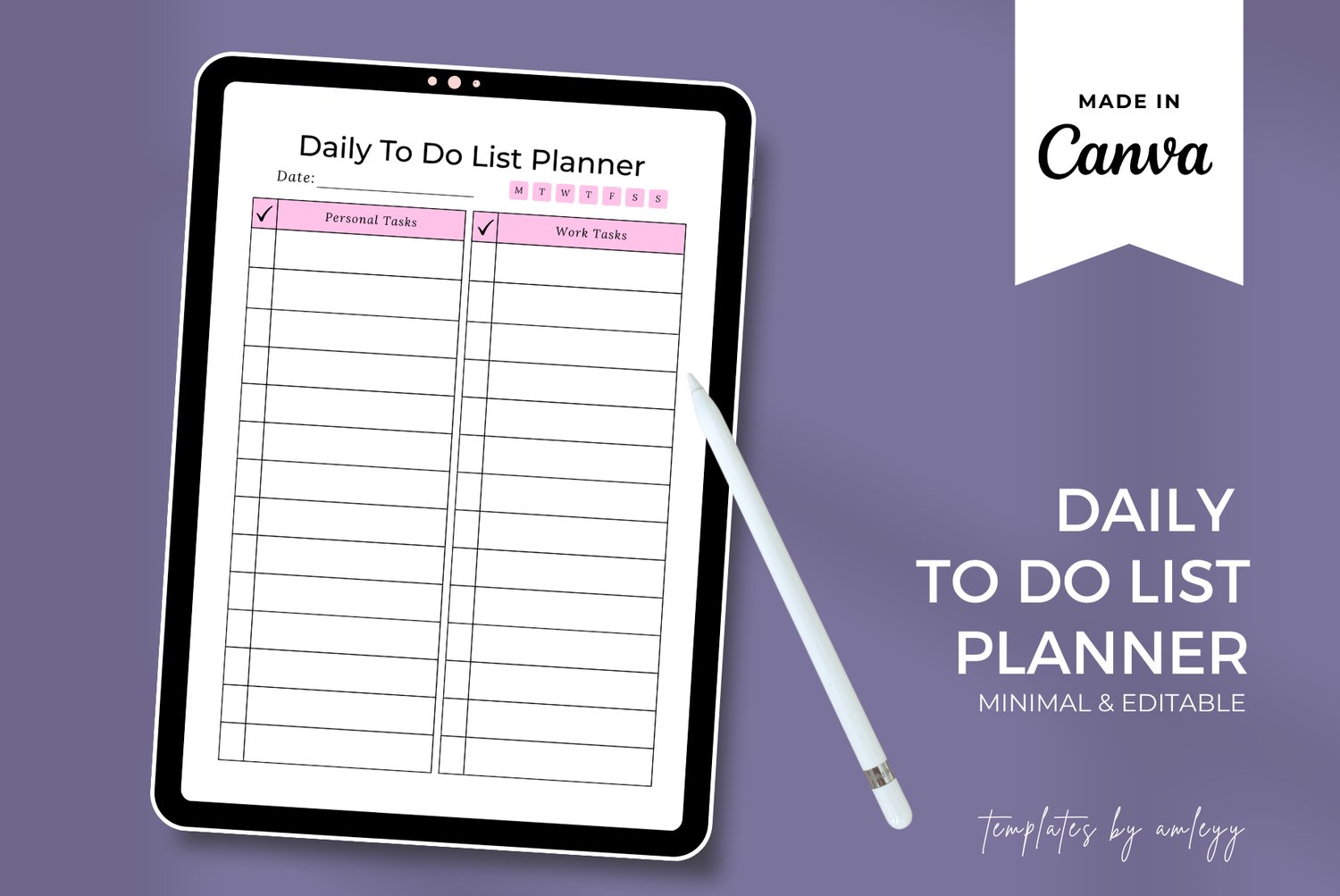 The clean and minimal design makes it perfect for students, professionals, entrepreneurs, and anyone who wants a simple yet effective daily planning system. Easily customize colors, fonts, and sections in Canva—no design skills needed. Use it digitally on your tablet or print it for a physical checklist you can use anytime.